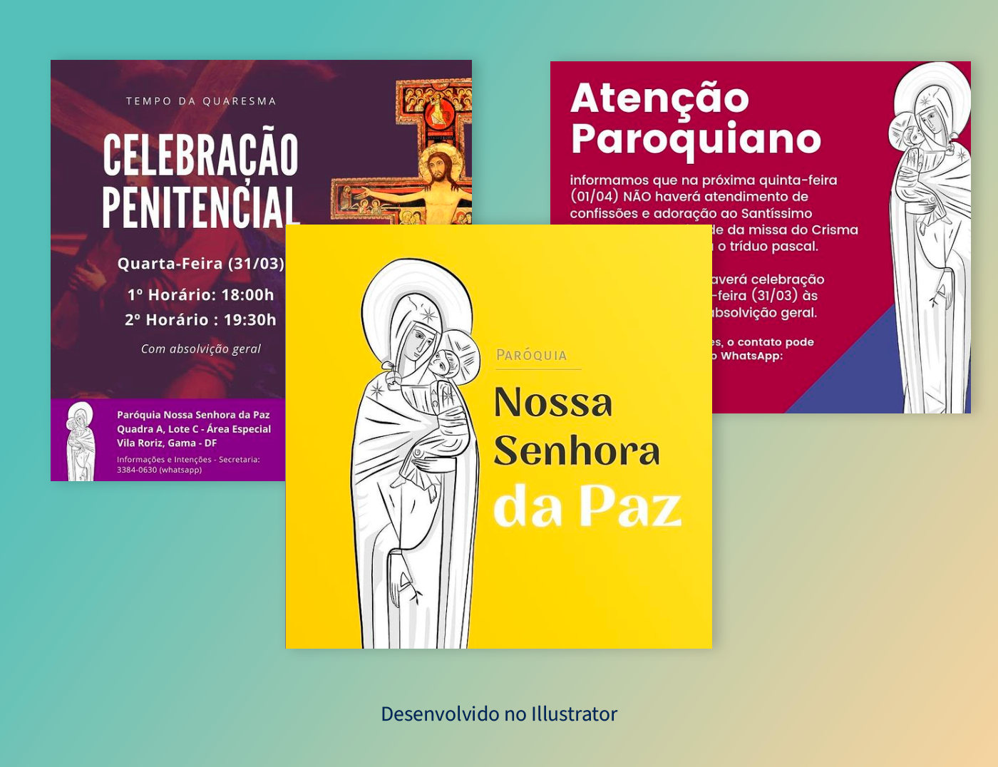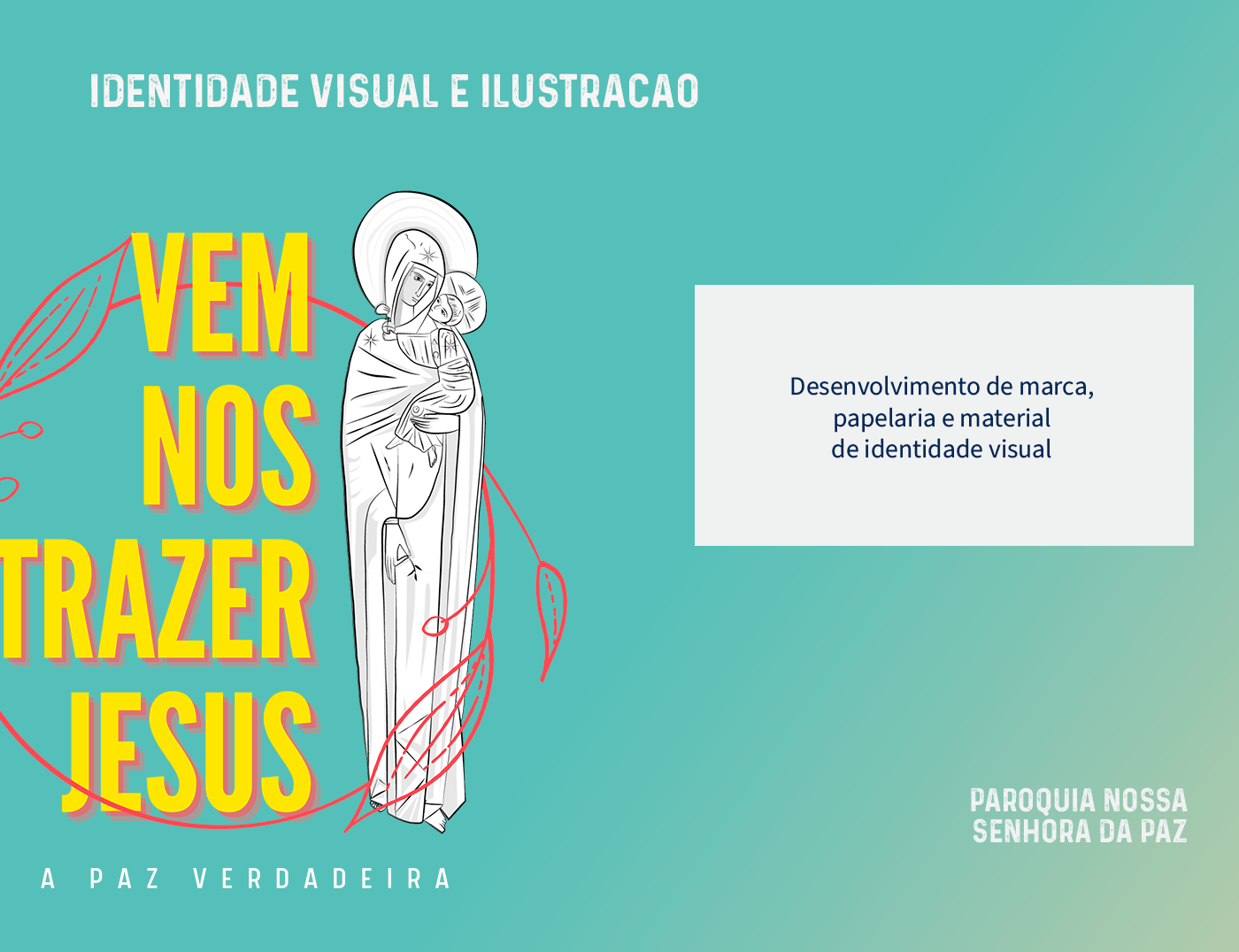 Illustration developed as a visual identity for the Parish of Our Lady of Peace. Authorial illustration, made in illustrator. It accompanies concept arts, posts for social networks, cards for ads, t-shirts, stationery and the like.
